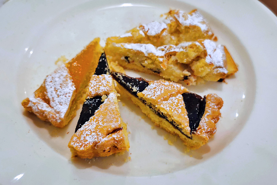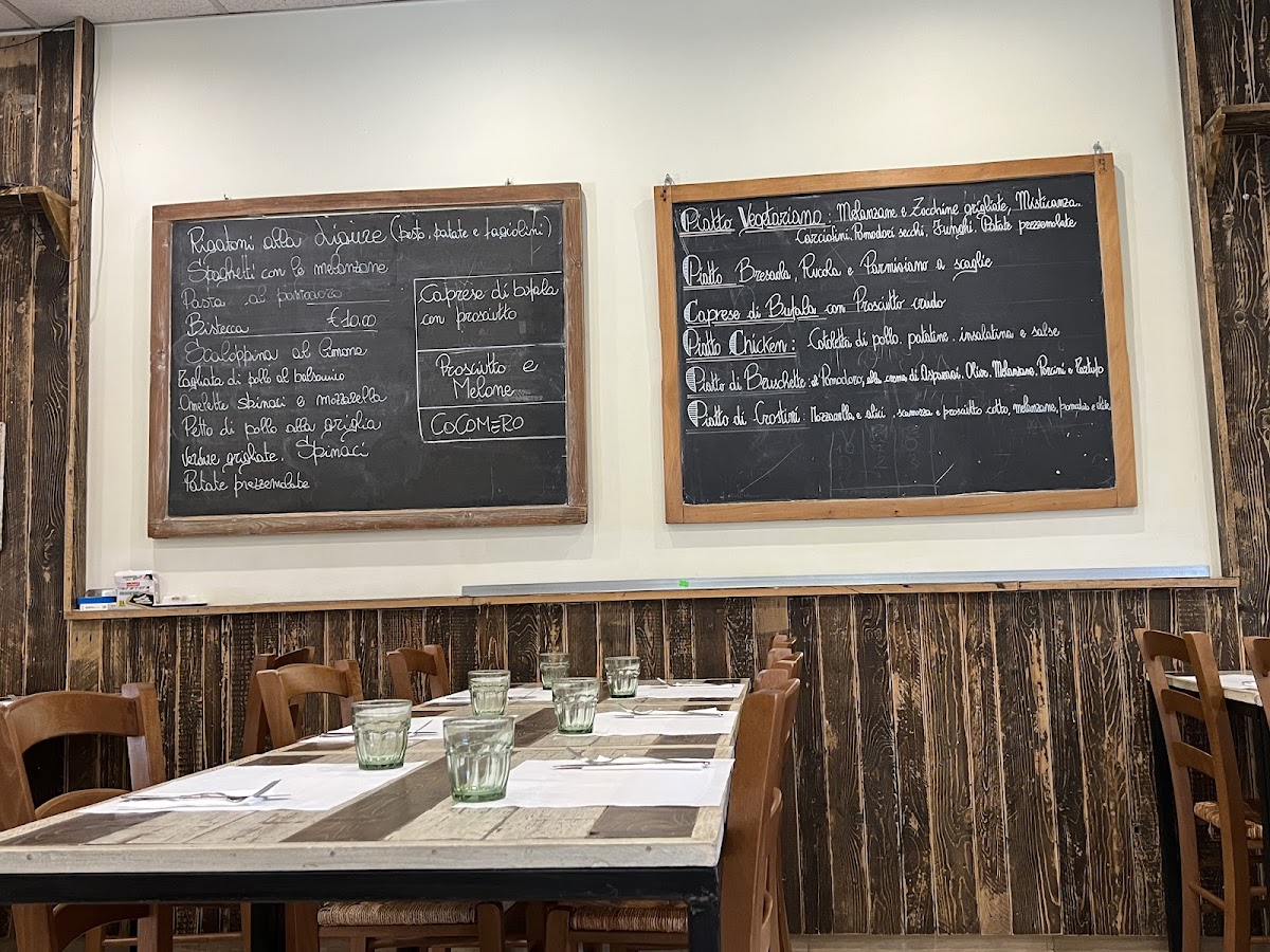 The staff was very kind and respectful. They were patient with our small knowledge of a Italian and explained many things. We had a huge lunch meal with appetizers, pasta, meat and salad. The fresh fruit for dessert was delicious and sweet. The bar area has many nice things for sale and a huge selection of after meal drinks.