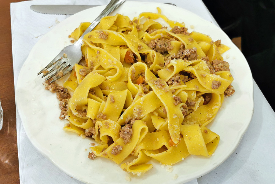 Capitati per caso, è stata una esperienza informale, molto sbarazzina. Il locale è essenziale, quasi spartano, non ha nemmeno una insegna esterna. Però è frequentato e consigliato dalla gente del posto. La cucina e il servizio sono gestiti in famiglia con cortesia e disponibilità. Il menù è molto contenuto. Più o meno comprende tre primi e tre-quattro secondi al giorno, però con aggiornamenti quotidiani. Abbiamo mangiato un ottimo antipasto con affettati vari, formaggio, sottoli e bruschette in bianco e al pomodoro. Molto buono e abbondante. Come primi abbiamo scelto "Mezze maniche alla crema di patate e 'Nduja" e "Pappardelle al ragù bianco". Certo, non è un ristorante stellato, ma non erano male e, per chi ama l'abbondanza, erano di quantità spropositata. Impossibile mangiare il secondo. Abbiamo invece concluso con un assaggino di ottime crostate. Abbiamo molto apprezzato il vino a prezzi irrisori. Due bottiglie, una di Traminer e una di un rosso veneto di cui non ricordo il nome a 8, dico otto euro la bottiglia. Il servizio (promiscuo) l’ho trovato pulito, però un po’ arrangiato e non accessibile a disabili in carrozzina.